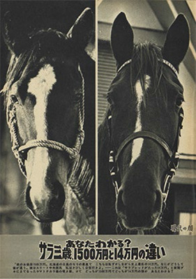 いまや数億の高額馬も珍しくないが、50年前の1千万円超えは破格だったのだ。一方、いくら物価水準が違うとはいえ、14万円のほうも破格の安さといえるのだが。