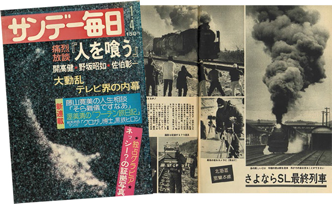 1975年12月は、日本の鉄道史における重要な転換点といえる。全国で無煙化が進み、SLが完全に役目を終えたのだ。当時の「さよならSLフィーバー」は凄まじかったが、「サンデー毎日」4日号が、ラストランの舞台となった室蘭本線の熱狂ぶりを伝えている。