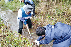 さらに9月7日㈰には、生物多様性保全の一環として「札幌ワイルドサーモンプロジェクト」と連携し、豊平川で野生サケが産卵しやすい環境づくりの取り組みを開始した。この取り組みでは、川岸の草刈りやツルヨシ根除去、川底ほぐしなど自然本来の流れと環境回復を目指した作業を実施し、秋の産卵期に向け、サケが自然産卵しやすい環境を整備した。