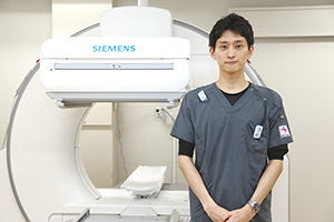 鈴村敦彦副技師長(35)は、診療放射線技師として9年のキャリアを持ち、主に「PET‐CT」と「SPECT」の画像撮影を担当する。