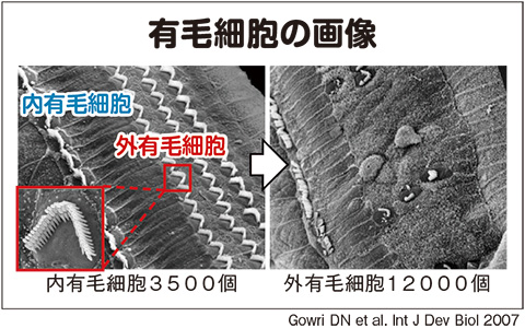 一度ダメージを受けた有毛細胞は回復せず、再生医療の研究も行われているが、実現に至っていない。