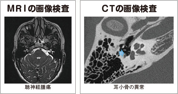 難聴の診断は①「純音聴力検査」と、②CTによる「画像検査」、③MRIによる「画像検査」。