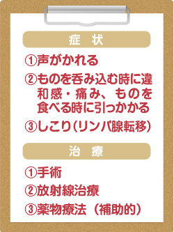 喉頭がんは、喫煙あるいは口の中の衛生状態が悪いと、喉の粘膜に炎症が起き、炎症が続くと遺伝子変異が生じてがん化し、発症する。