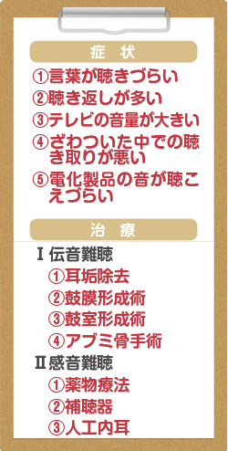 難聴には①外耳や中耳に起きる「伝音難聴」と、②内耳に起き高齢者に多い「感音難聴」がある。